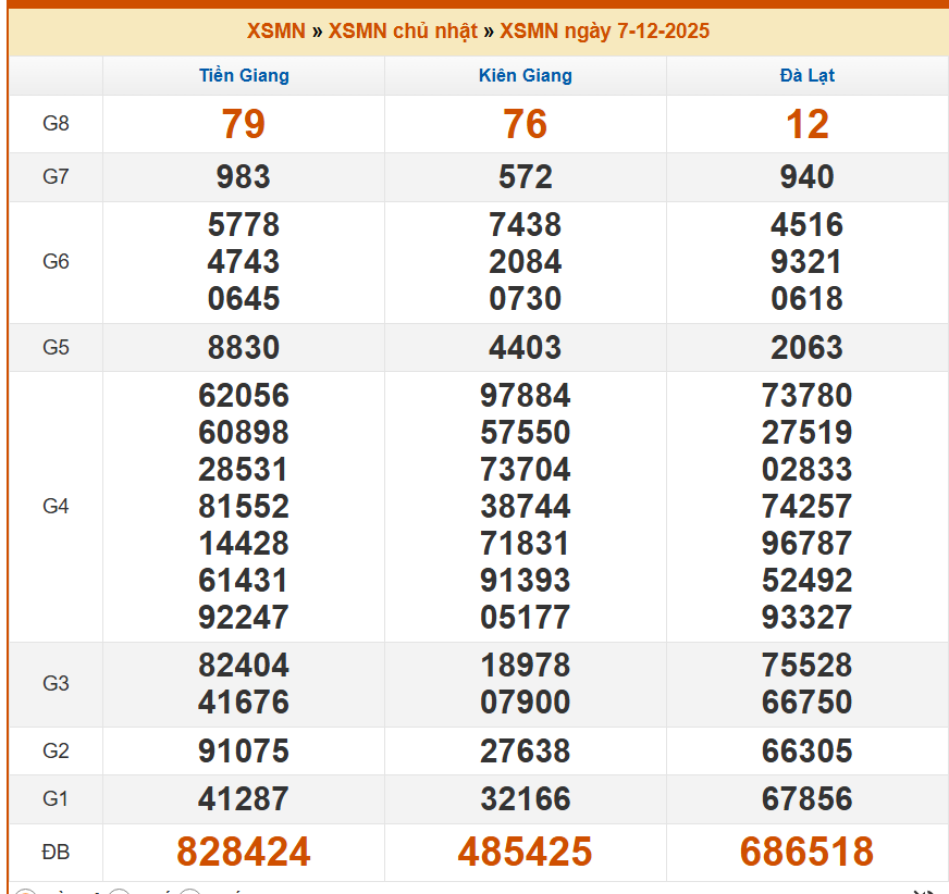 KẾT QUẢ XỔ SỐ MIỀN NAM NGÀY 07/12/2025